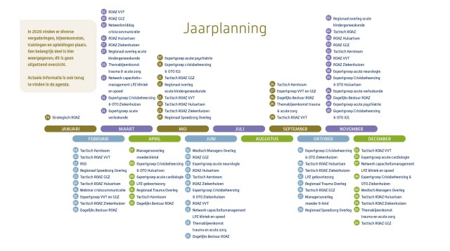In 2026 vinden er diverse vergaderingen, bijeenkomsten, trainingen en opleidingen plaats. Een belangrijk deel is hieronder weergegeven; dit is geen uitputtend overzicht. Via deze link open je de jaarplanning in PDF.